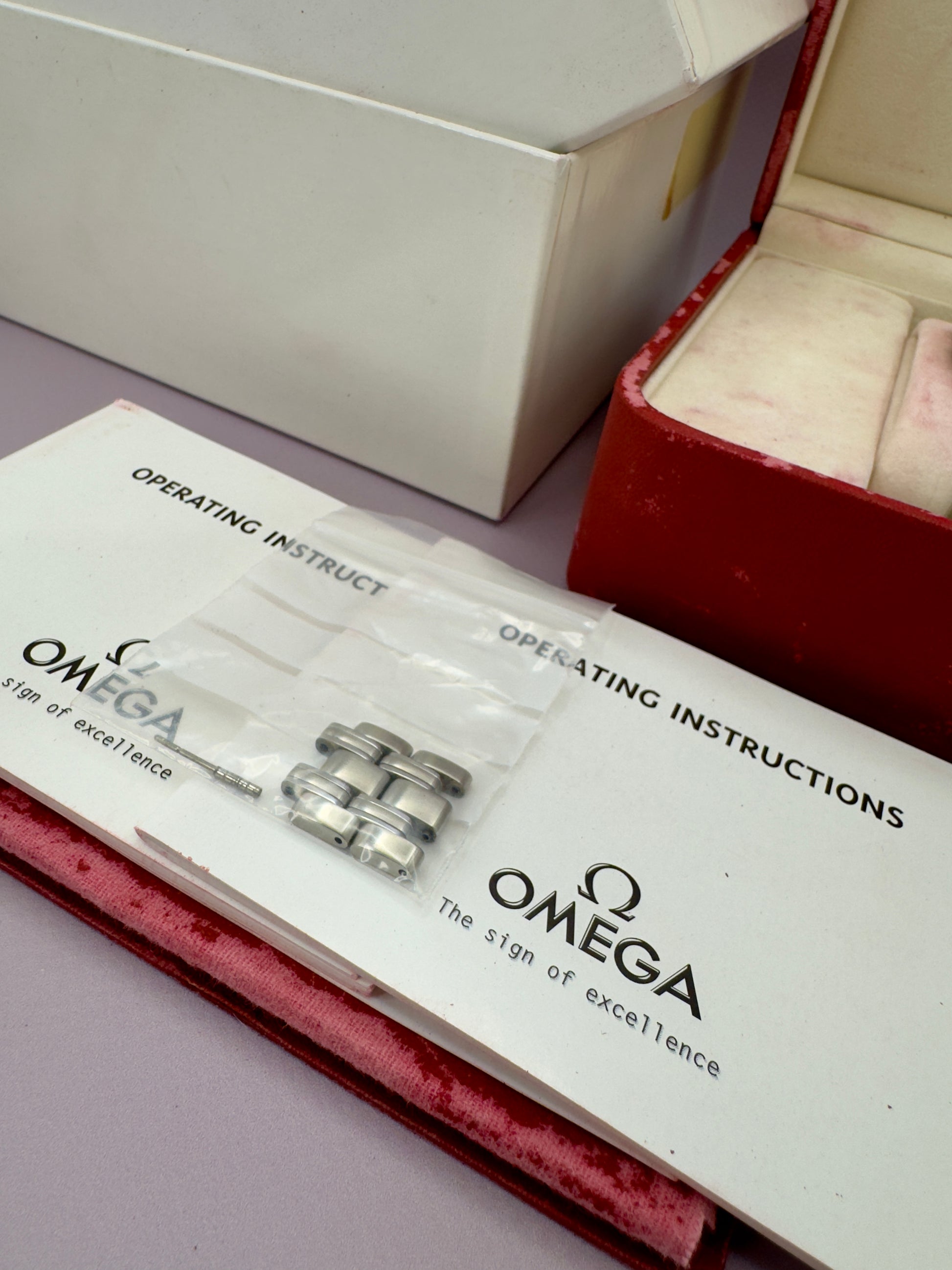 Contents | Omega Inner & Outer Box, , Manual x2, Spare Links x2 |
